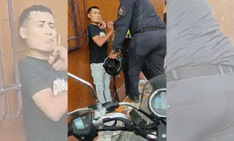 En el video se observa a dos oficiales de la Policía Nacional Bolivariana (PNB) golpear con un casco, jalar por la camisa, apartar una moto y cachetear a un hombre.Uno de los uniformados, con chaqueta verde neón y negra, somete al ciudadano.
