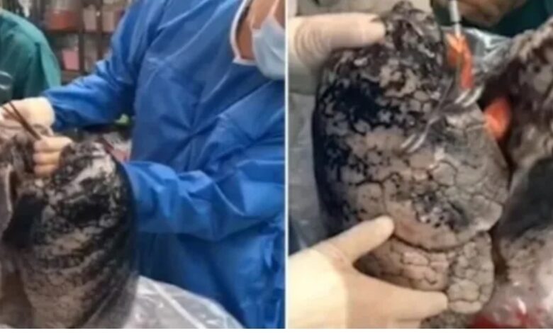 Muestran los pulmones negros de un hombre que fumó por 30 años