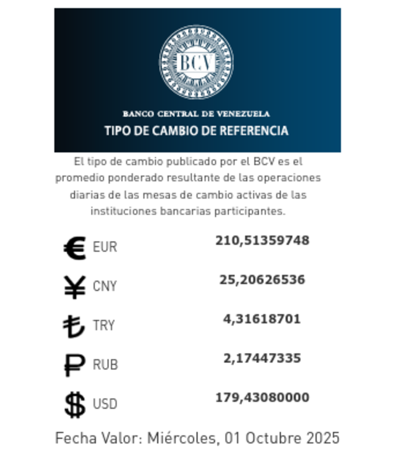 La moneda estadounidense abre el mes en 179,43 bolívares por unidad, de acuerdo al reporte del BCV en su sitio webc.