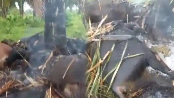 En un video compartido por trabajadores de la finca donde estaba el ganado, y publicado por La Patilla se puede ver el estado en el que quedaron los animales, junto a una palma incendiada producto de la centella que cayó en el lugar este jueves 10 de octubre.