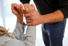 La grabación de la cámara de vigilancia los muestra parados afuera de un ascensor abierto. Ambos pelean por un maletín naranja y que ella intenta recoger. Mientras luchan por el objeto, él la toma del brazo y la arrastra contra la pared trasera del ascensor, luego ambos caen.