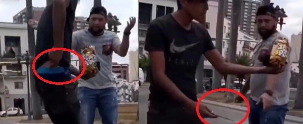 Mediante un video compartido a través de la red social Twitter por el periodista Jesús Medina, se observan a los presuntos “creadores de contenido” quitándole un refresco a una persona que se encontraba sentada comiendo en un banco. Éste reaccionó de forma inmediata confrontando a los muchachos, quienes al tomar el envase, lo abrieron y uno le preguntó al otro si quería tomar de la gaseosa.