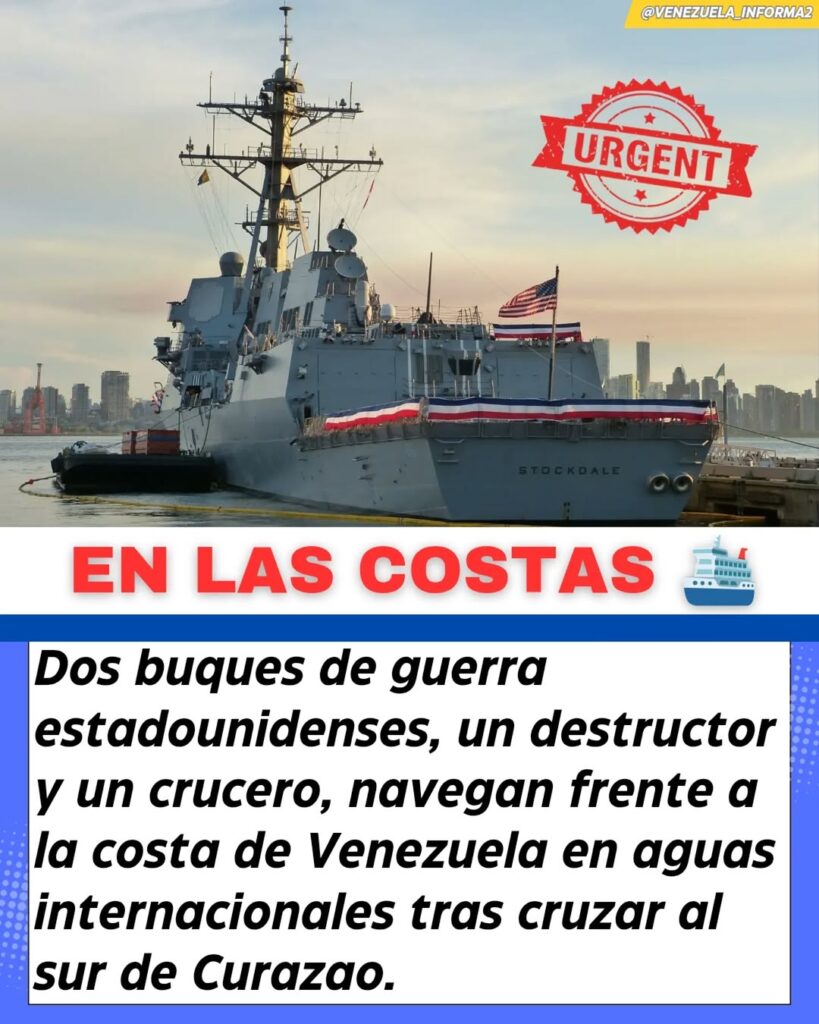 Dos embarcaciones de guerra estadounidenses, el USS Stockdale (DDG-106) y el USS Gettysburg (CG-64), se encuentran navegando a unos 50 kilómetros de las costas del estado Falcón, de acuerdo con reportes de monitoreo marítimo difundidos este jueves.