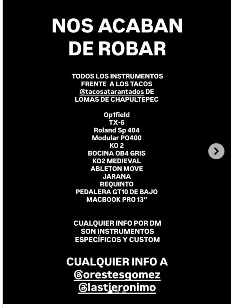 Orestes Gómez, percusionista de la banda venezolana Rawayana, informó este viernes 24 de octubre a través de sus redes sociales que la banda fue víctima de un robo en México.
