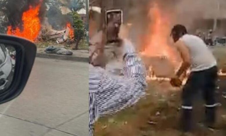 Se estrelló una avioneta de la Fuerza Aérea Colombiana en una calle de la ciudad de Cali: un muerto y un herido (+video)