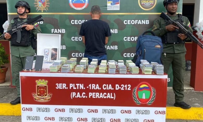 La Guardia Nacional Bolivariana (GNB) detuvo a un ciudadano colombiano que trasladaba más de 10.200 dólares falsos en San Cristóbal, estado Táchira.