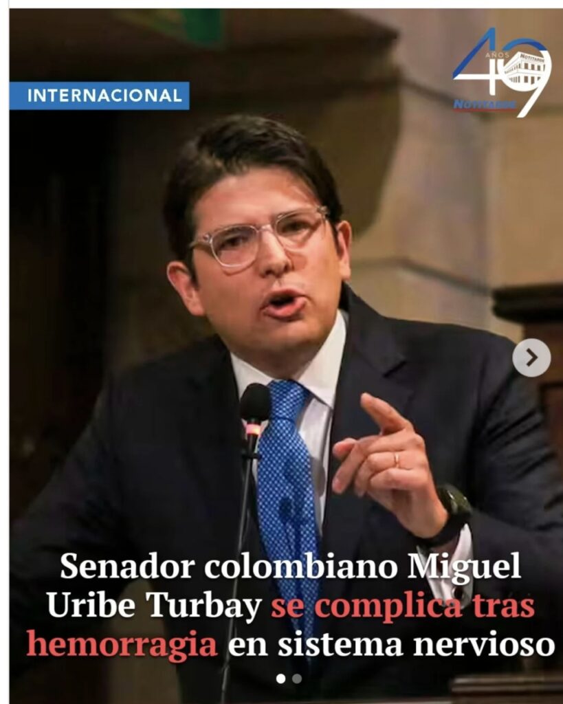 Senador colombiano Miguel Uribe Turbay se complica tras hemorragia en sistema nervioso