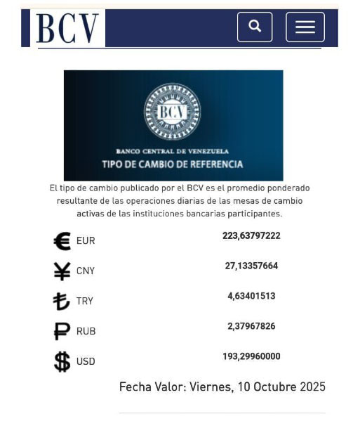 El Banco Central de Venezuela (BCV), fijó las tasas del dólar y euro oficiales que estarán vigente para el viernes 10 de octubre, presentando un leve aumento en el precio en comparación al cierre anterior.