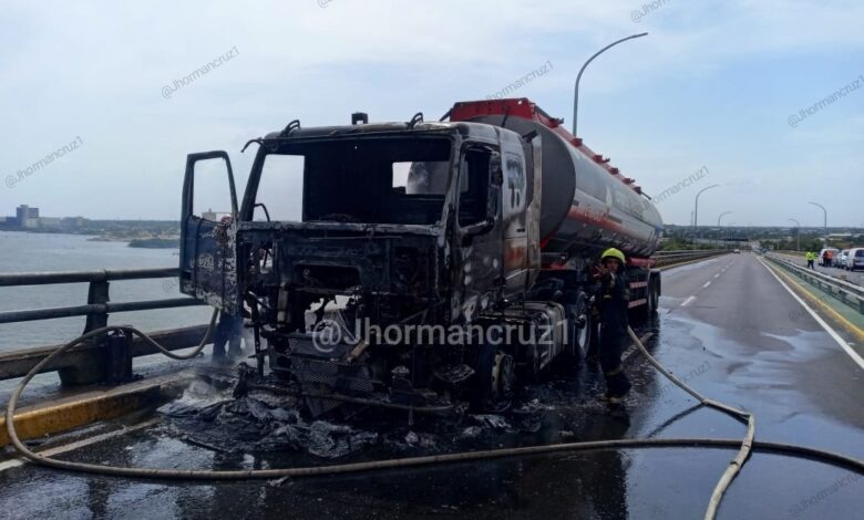 El incendio de una gandola cargada con combustible se registró la tarde de este lunes, en el Puente sobre el Lago de Maracaibo, sentido hacia la Costa Oriental del Lago (COL).Aproximadamente a 10 minutos para las 3:00 p. m., las autoridades cerraron los accesos al Coloso zuliano, tras producirse el siniestro que causó pánico entre los usuarios del viaducto, refirió mediante sus redes sociales el periodista Jhorman Cruz.