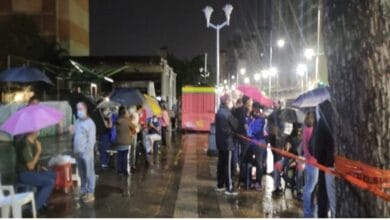 Venezolanos madrugan bajo la lluvia para vacunarse en el Hotel Alba Caracas