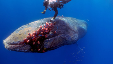 Hallan una ballena enredada en una malla, para evitarle agonía le realizaron una eutanasia (Fotos)