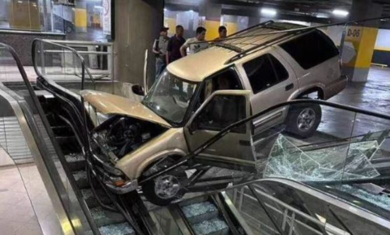 -A través de las redes sociales se dio a conocer que una camioneta de color dorado se estrelló contra las escaleras mecánicas del Centro Comercial el Sambil de Chacao.