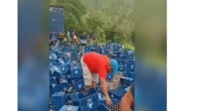 Camión de Polar pierde la carga en Carabobo y le saquean las cajas que se habían salvado (Video)