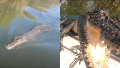 Cocodrilo intenta subirse al bote y todo queda grabado (Video)