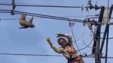 Peligroso rescate de un oso perezoso que colgaba de un cable de energía (Video)