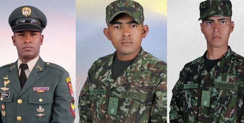 Los uniformados fallecidos fueron identificados como el sargento segundo Wilmar Rivas Moreno y los soldados profesionales Darío Estrada Pacheco y Andrés Estrada Muñoz.
