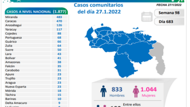 Venezuela registró en el último día del mes de enero 1.953 nuevos contagios de Covid-19, de los cuales 1.952 fueron…