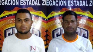 Los aprehendidos fueron identificados como Siober Ramón Rondón Lara y Ender Alexander Yánes Suárez. Dos hombres fueron detenidos en el…