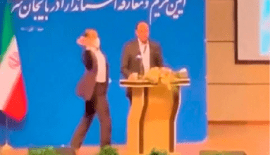 La toma de posesión de un gobernador iraní fue interrumpida por un hombre que subió al escenario y le dio…