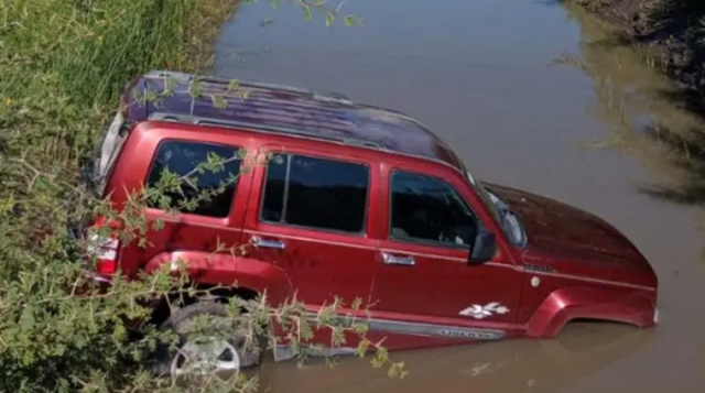 Las autoridades municipales recibieron el reporte sobre una camioneta Jeep Liberty color rojo volcada sobre un canal de agua ubicado cerca de la carretera que conecta a Valle de Santiago con el municipio de Jaral del Progreso.