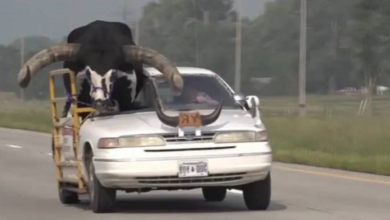 Policía detiene a hombre por conducir con un toro enorme en el asiento del pasajero (Video)