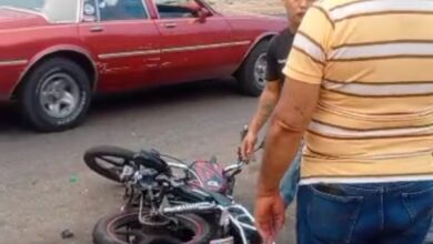 Dos heridos dejó accidente entre moto y auto en el centro de Lagunillas