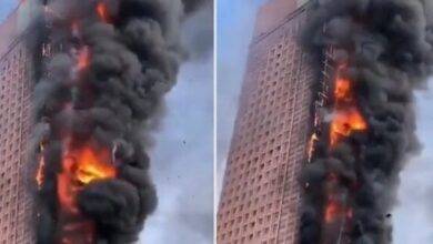 Un enorme incendio envolvió un edificio de oficinas de gran altura en el centro de Changsha, capital de la provincia…