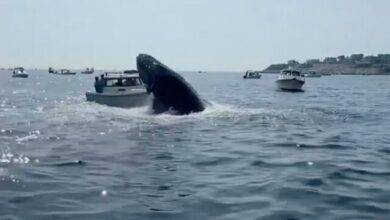 Una ballena jorobada saltó y golpeó un bote en Massachusetts (Video)