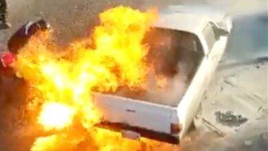 Bombero resulta envuelto en llamas mientras sofocaba incendio de un vehículo (Video)