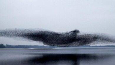 Estorninos forman en el cielo un pájaro con las alas abiertas