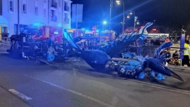 Gran pájaro del desfile de Navidad se desploma sobre la multitud en Francia