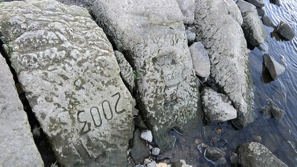 Las conocidas como «piedras del hambre», son rocas en el lecho de los ríos que solo son visibles cuando los niveles del agua son extremadamente bajos.