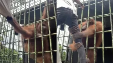 Hombre es atrapado por un orangután y arrastrado hacia las barras con violencia (Video)