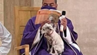 Un sacerdote oficia misa en México con su perrita en el regazo (Foto)