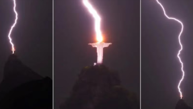 Capturan el momento exacto en que un rayo impactó al Cristo Redentor en Brasil (Fotos)