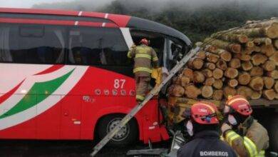 -Una persona falleció y otras doce resultaron heridas este lunes al chocar un autobús con un camión que cargaba troncos,…