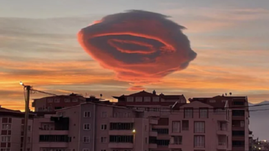 Una extraña formación de nubes que se asemeja a un objeto volador no identificado (OVNI) fue vista flotando sobre Bursa,…