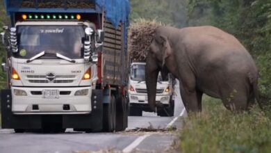 «Cobrando peajes»: elefante detiene camión para comer caña de azúcar