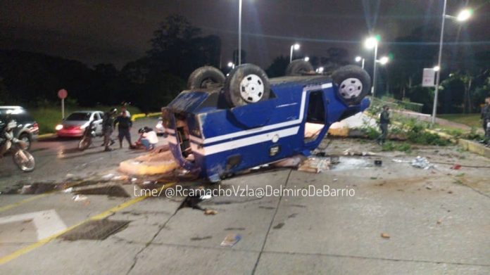 Una tanqueta de la Policía Nacional Bolivariana (PNB) se volcó el jueves 7 de enero a las 11:45 pm en Plaza Venezuela, Caracas, dejando a 2 funcionarios heridos.