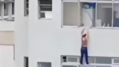 Conmoción en Brasil: una mujer quedó colgada cinco minutos de un piso 16 tras resbalarse mientras limpiaba (+Video)