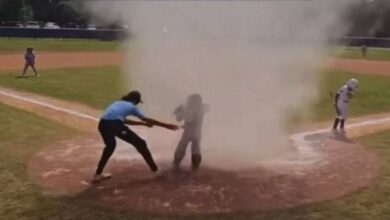 Niño queda atrapado en un remolino en un partido de béisbol (Video)