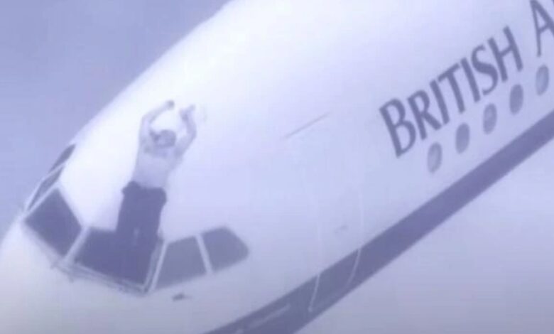 Después de 27 minutos de vuelo, al alcanzar una altitud de 5.300 metros, dos de los seis vidrios del parabrisas se desprendieron. La ventana succionó literalmente al capitán. Su cabeza y su torso quedaron al aire libre, mientras sus piernas permanecieron dentro del avión, con los asistentes de vuelo agarrándolo. Ocurrió en 1990. Había 81 personas.