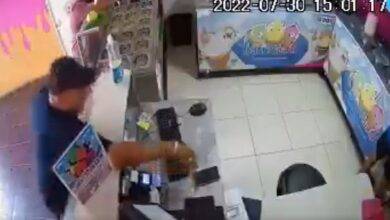 La cámara de seguridad en una heladería colombiana capta como roban a la encargada mientras ella, desprevenida, prepara el despacho.…