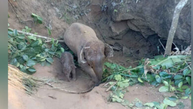 Elefante y su cría se salvan tras caer en hoyo de cinco metros (Fotos)