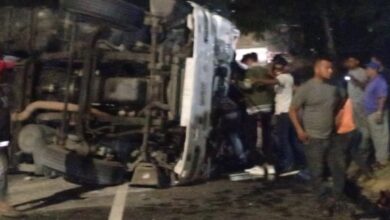 Una gandola de carga pesada que transportaba alimentos se volcó la noche de este miércoles 2 de julio en la…