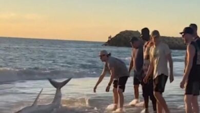 Un grupo de bañistas rescató a un tiburón de dos metros de largo en una playa de Australia Occidental el…