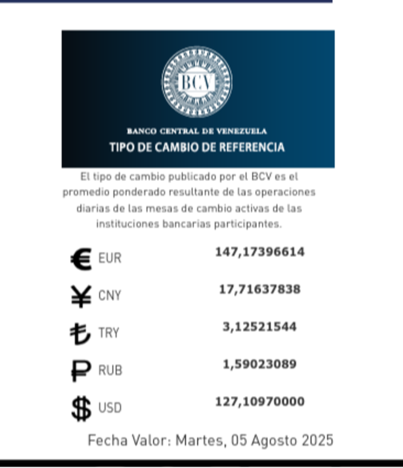 Estas tasas sirven como referencia para las transacciones en comercios formales, entes públicos y privados, además de pagos de servicios dentro del país.
