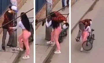 TREMENDA FUERZA: se echó al hombro a su novio borracho y cargó una bicicleta (+Video)