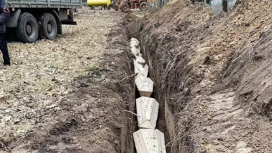 Los ucranianos en la ciudad de Chernihiv han recurrido a cavar trincheras para enterrar a sus civiles muertos, según muestran…