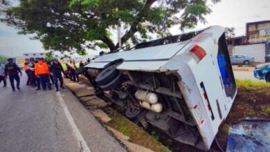 Volcamiento de autobús en la Autopista Sur de Valencia deja cuatro heridos (+Detalles)